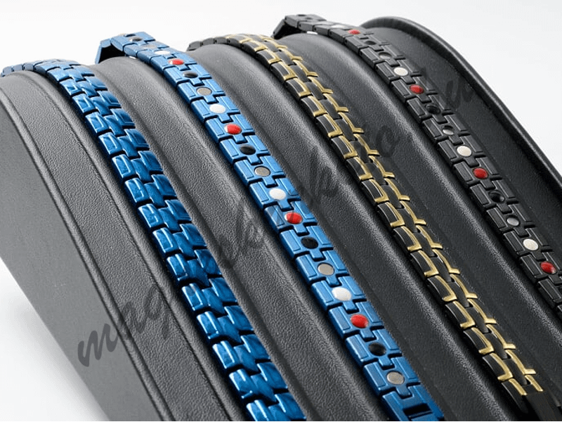 Mágneses termékeink 316L típusú orvosi acélból készültek, mely rozsdamentes és antiallergén. A belső oldalukon különböző színű betétek találhatók.