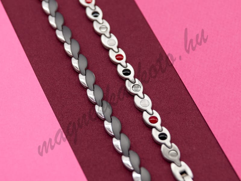 Mágneses termékeink 316L típusú orvosi acélból készültek, mely rozsdamentes és antiallergén. A belső oldalukon különböző színű betétek találhatók.