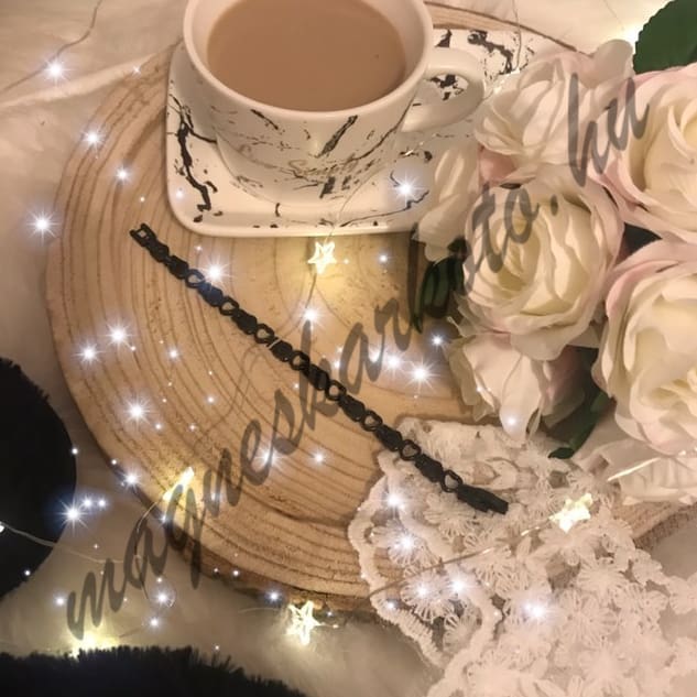 Orvosi rozsdamentes acélból készült fekete női karkötő, szív formájú szemekkel. Mágnesbetéteket, germániumot, valamint negatív ionos és infravörös kerámia betéteket tartalmaz.